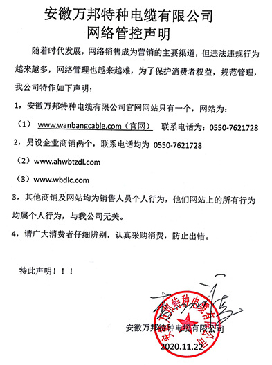 鄭重聲明:安徽萬邦特種電纜有限公司官方網站為:www_wanbangcable_com.qhldesign.com,除此之外無任何子網站或合作網站,其余均為假冒偽劣。電話:0550-7621728 13485756353 地 址:安徽省天長市滁州高新技術產業開發區經四路29號